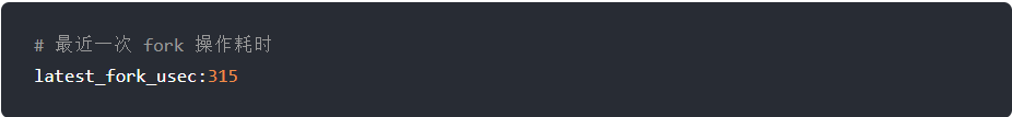 我们可以执行 info 命令获取到 latest_fork_usec 指标,表示 Redis 最近一次 fork 操作耗时。
